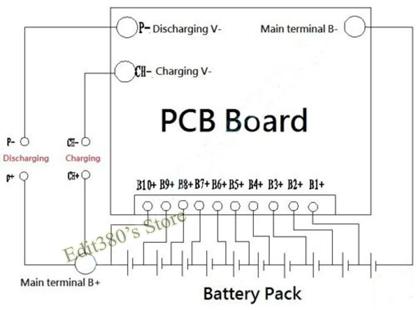Quel est donc le circuit de protection qu’on utilise? c’est un BMS qui est l’acronyme de Battery Management System. Pour ma batterie de bicyclette électrique, j’ai acheté un BMS de base pour 10 piles Li-Ion en série, ce qui le qualifie de 36V.