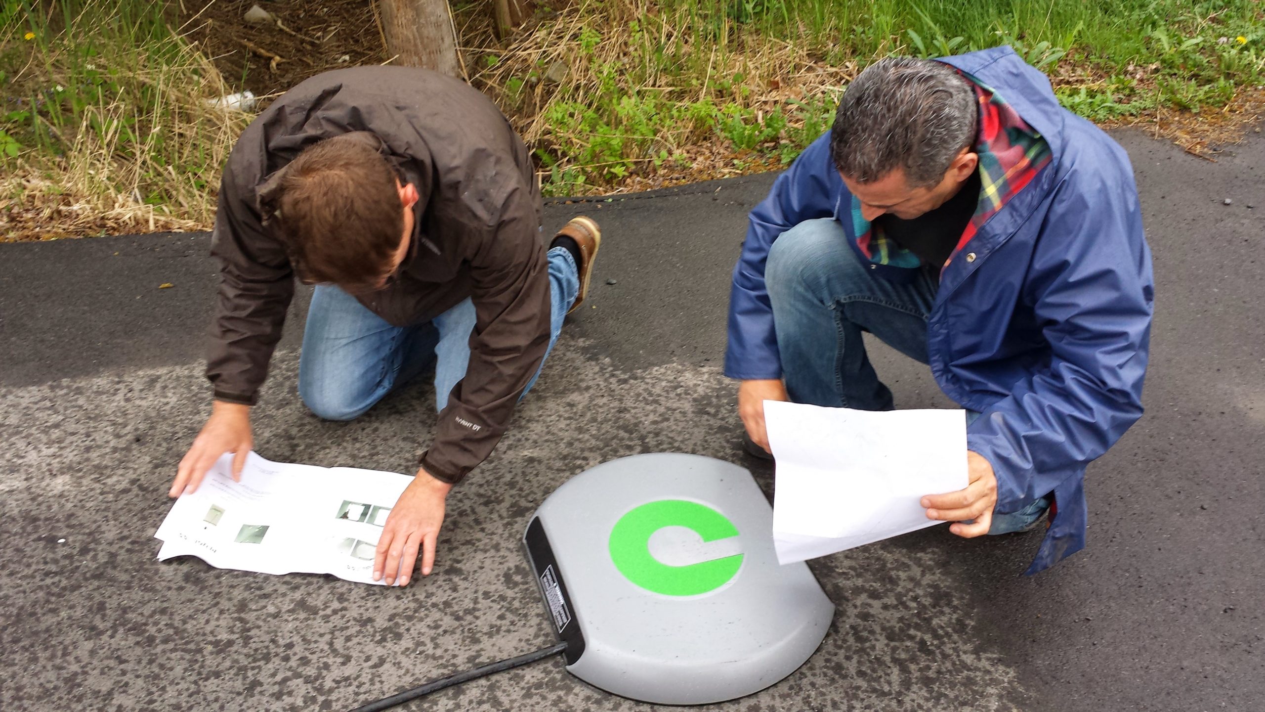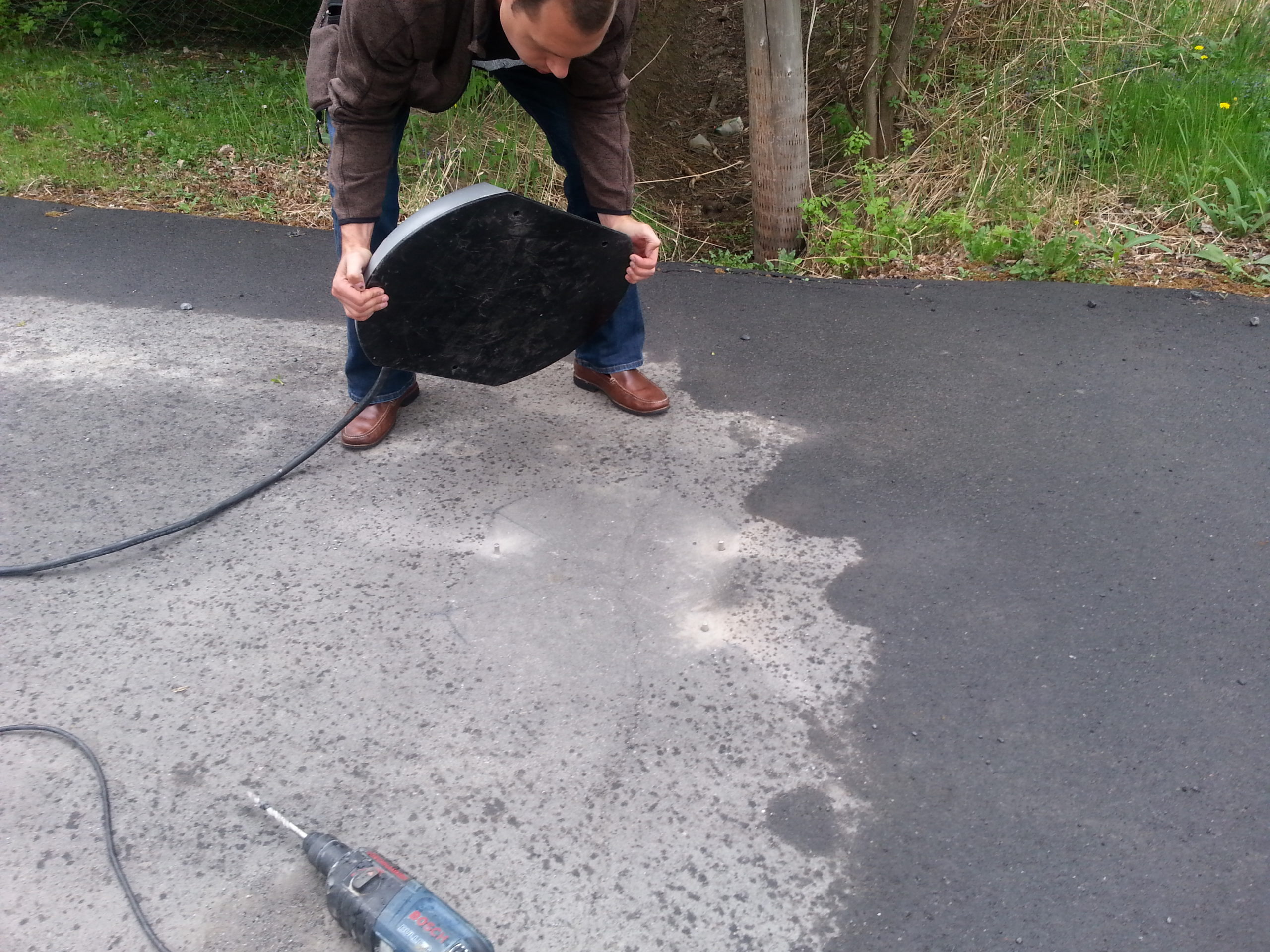 Avec un détecteur de métal, il faut s’assurer qu’il n’y a pas d’acier dans le sol dans la zone qui recevra le bloc. Ainsi, les stationnements en béton avec de l’acier d’armature ne pourront malheureusement pas recevoir un tel système à induction. Dans le cas de Guy, son entrée asphaltée ne comportait pas d’acier en-dessous.