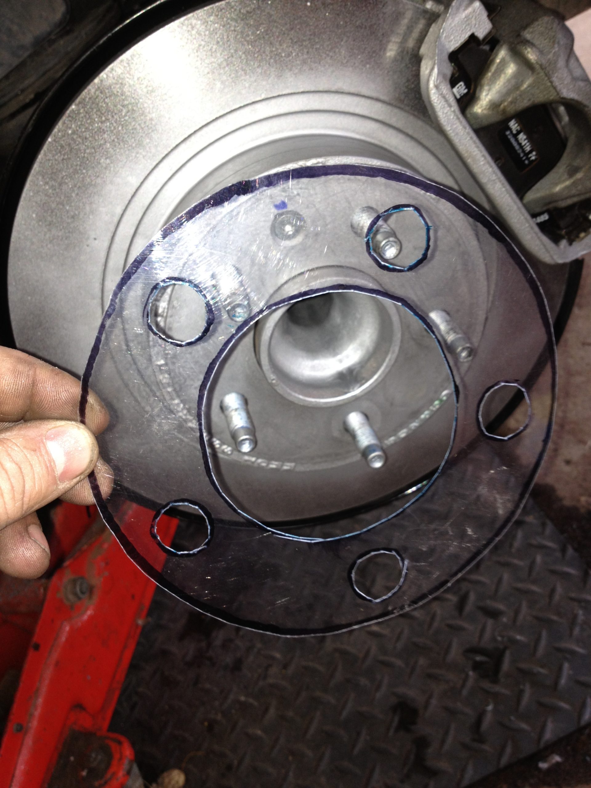 Cette quatrième photo montre un disque peint remis en place sur le hub de roue peint, et la feuille de plastique qui est sur le point d’être installée. Le gouttelettes de peinture sur la surface d’usure du disque vont partir au premier freinage. Notez que ces opérations ne sont pas demandées comme entretien habituel d’une voiture. Ces conseils ont pour but de garder aux pièces métalliques une durabilité qui dépasse celle prévue par le manufacturier. Un garage/concessionnaire ne fait pas ces opérations. Un propriétaire de Volt motivé à garder très longtemps sa voiture préférée le fait. (Notez que je faisais la même chose sur le Ford Taurus 1996 qui a été remplacé par la Volt. On se développe des trucs, pour garder en forme des vieilles voitures!)