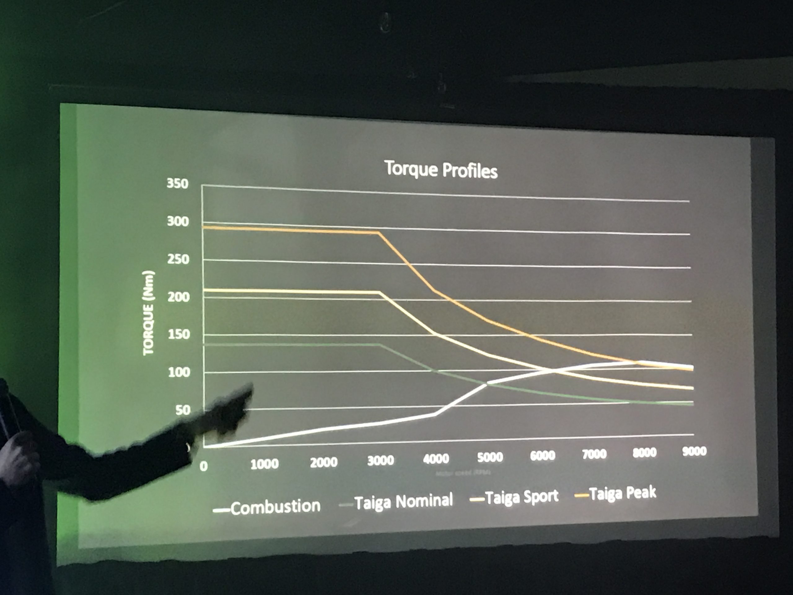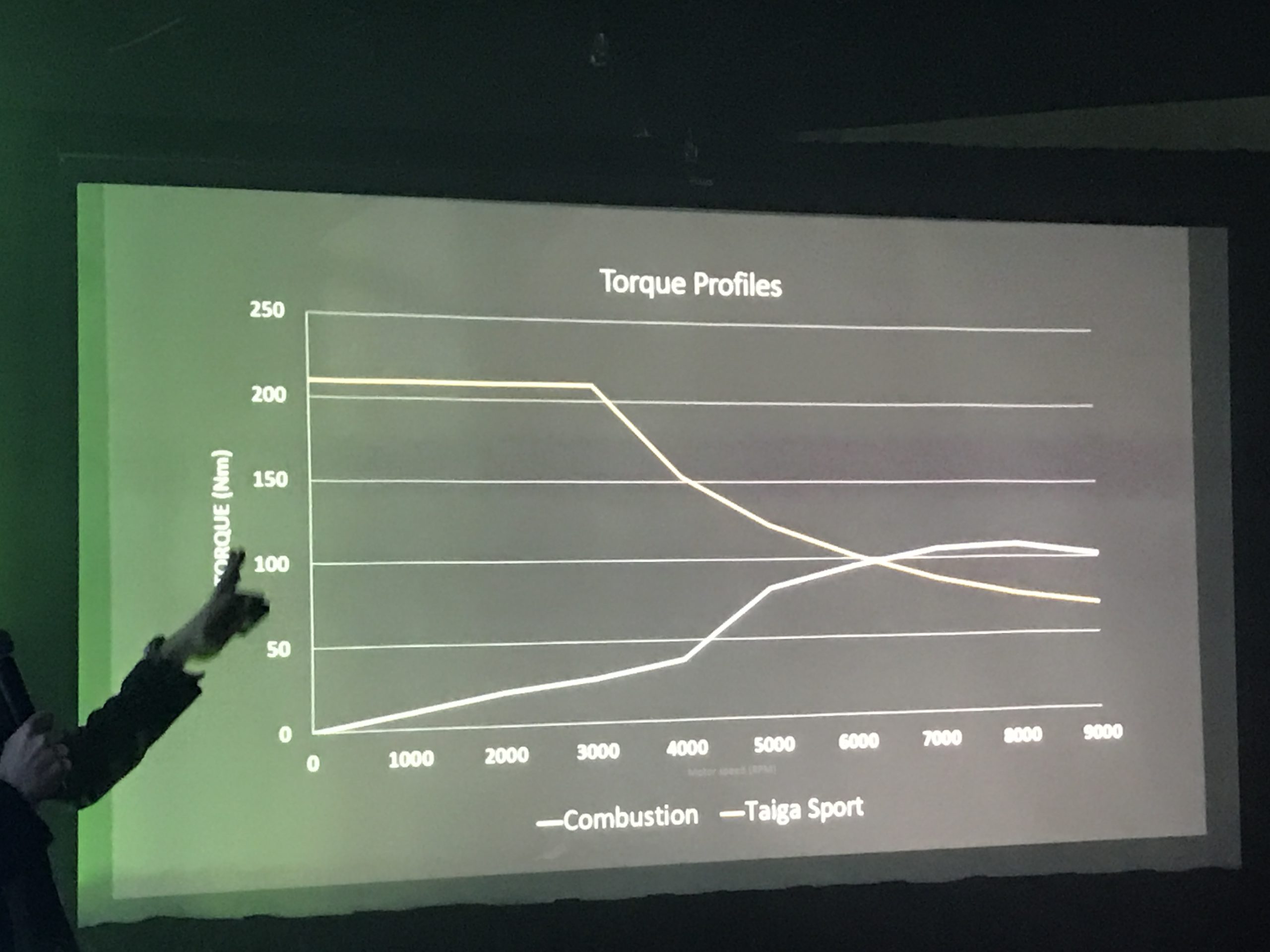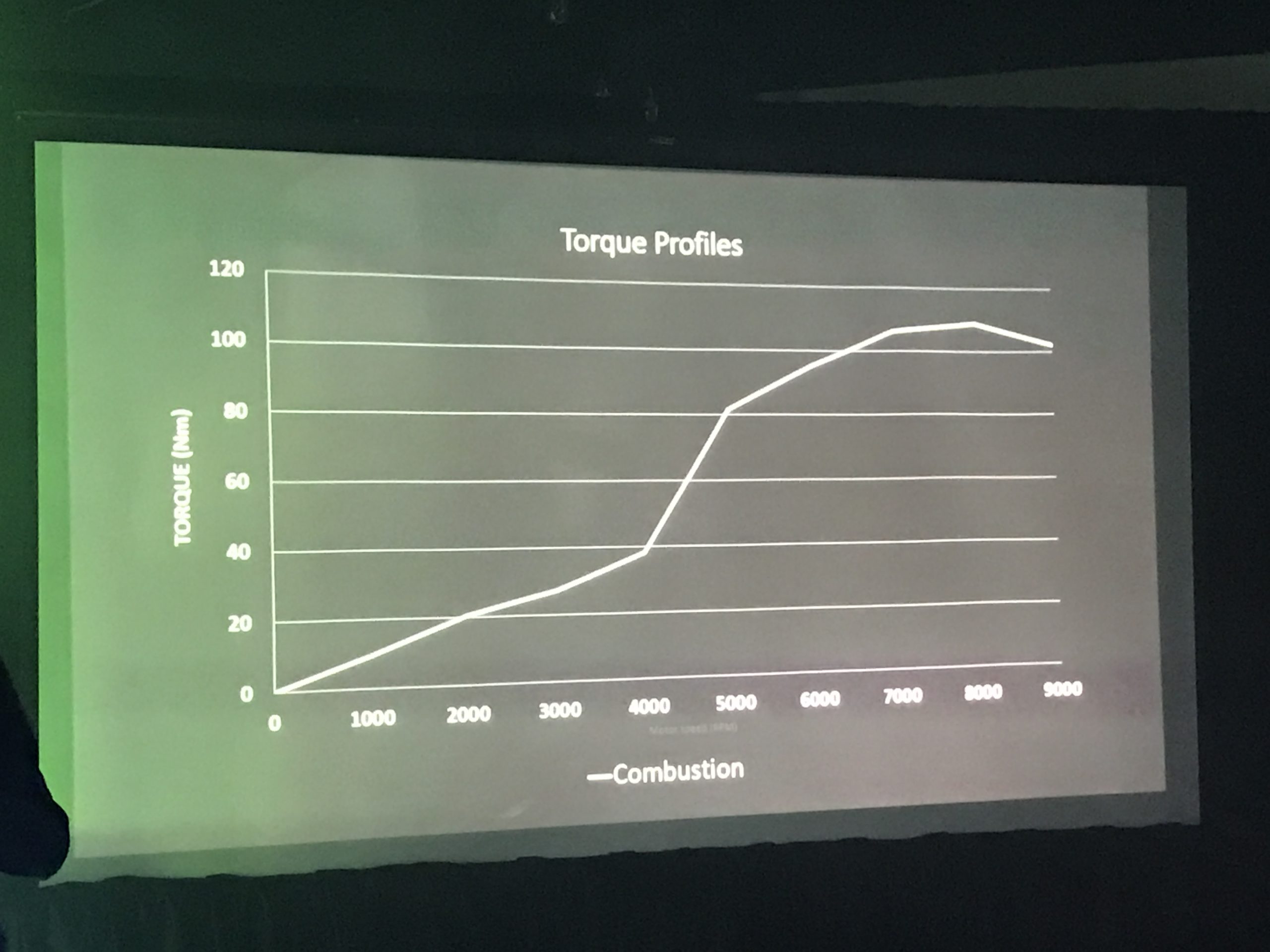 Lors du dévoilement, nous avons été très impressionnés par certains éléments de conception qui nous ont semblés supérieurs à ce qu’on retrouve dans une motoneige thermique. En premier, on peut contrôler le couple exercé par le moteur électrique, ainsi, voici le couple d’une motoneige à moteur à essence typique: