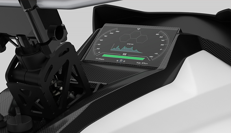 La motoneige est pourvue d’une interface usager digne d’une Tesla! On y retrouve un guidage GPS, la connectivité LTE et WiFi, avec affichage de la vitesse, niveau de charge, distance franchissable restante.