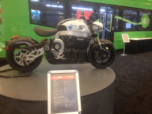 Lors de son passage aujourd’hui au symposium EVS29 à Montréal, le premier ministre, M. Couillard, a pu voir l’un des produits de l’innovation Québécoise : la moto électrique Lito Sora. Il a pu s’entretenir avec l’un des présidents de l’entreprise, M. Jean-Pierre Legris, qui lui a fourni quelques détails sur la construction (au Québec) et le fonctionnement de la moto.