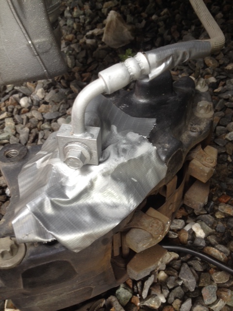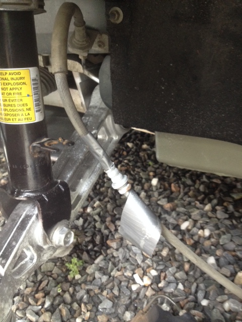 J’ai profité de ce que l’étrier était enlevé pour peinturer les pièces de suspension en aluminium. Ceci va protéger un peu plus de l’eau salée ces pièces contre la corrosion et leur donner une belle apparence. J’ai utilisé une peinture de couleur … aluminium! 🙂 J’ai aussi masqué les autres composants autour pour éviter qu’ils soient atteints par la peinture.