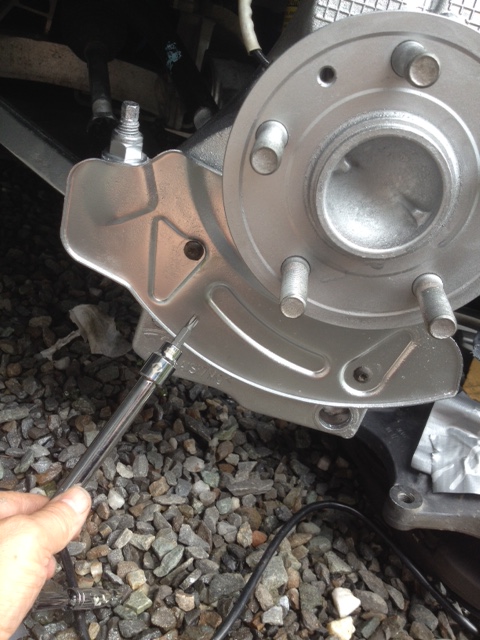 La plaque anti-éclaboussure, située sous le roulement de roue m’a semblée attaquée par la corrosion par les petites particules de poussière de freins! Je l’ai passée à la brosse métallique puis l’ai peinturée à la peinture aluminium. Elle est tenue en place par deux vis à tête Torx T30 très faciles à enlever. Une fois cette plaque enlevée, on a aussi accès à peinturer la suspension placée derrière.