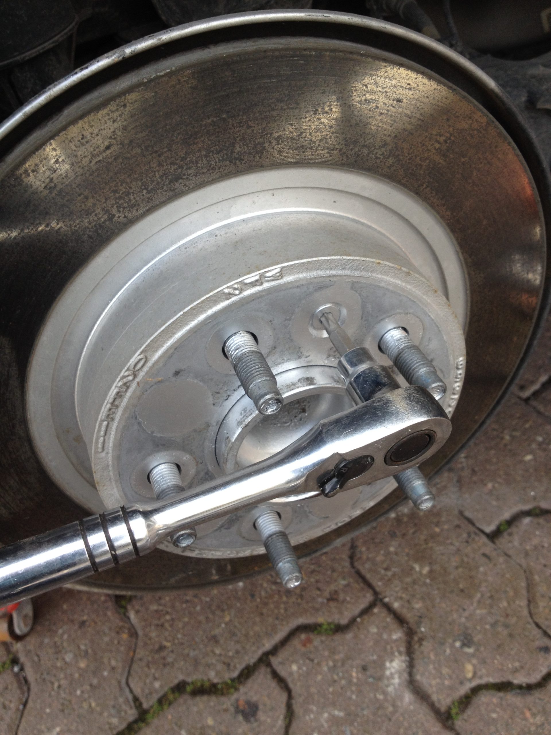 Pour pouvoir enlever le rotor de frein, il faut dévisser une vis avec un douille Torx T-30. Cela se dévisse facilement (avec le bon outil).