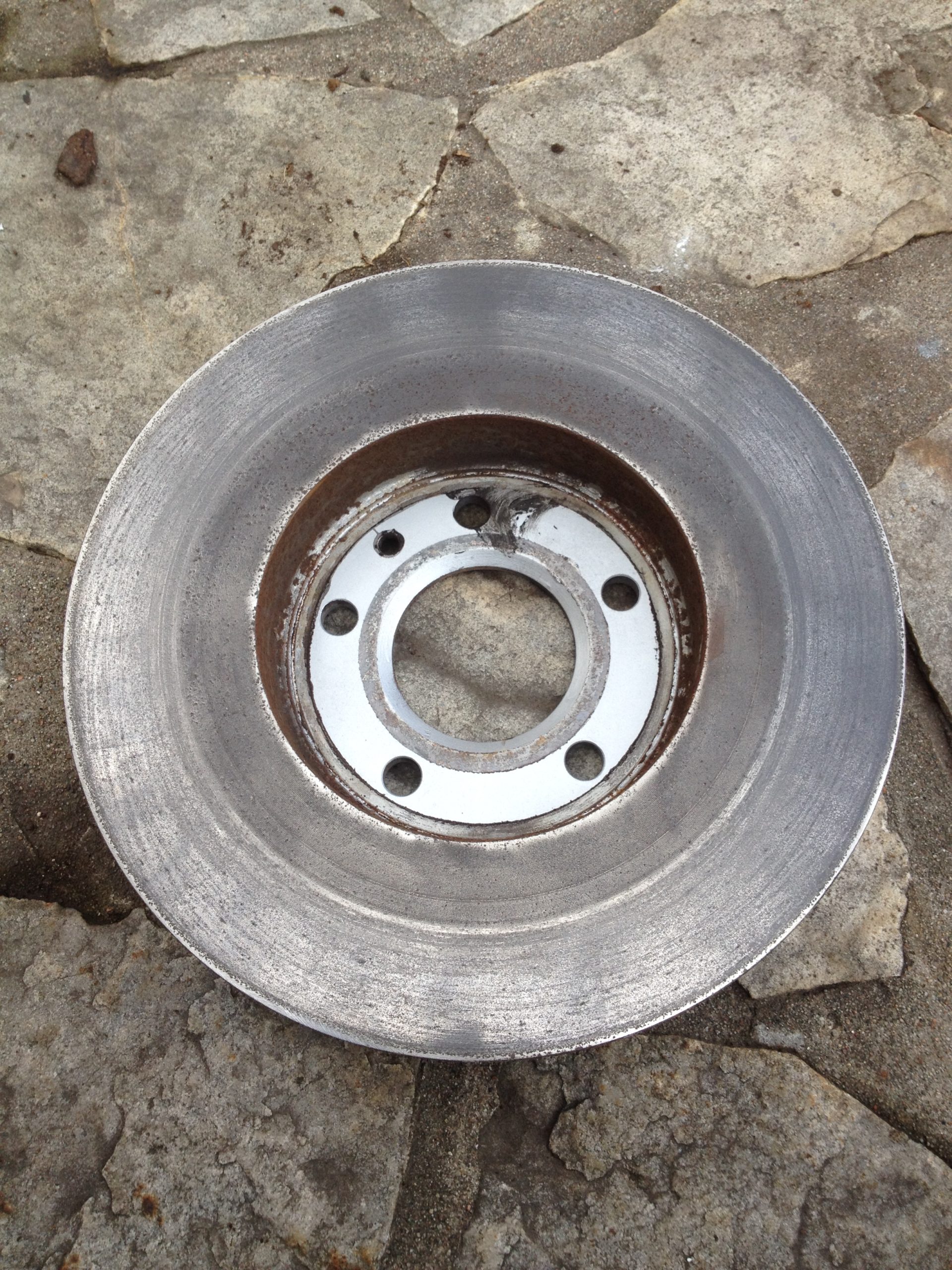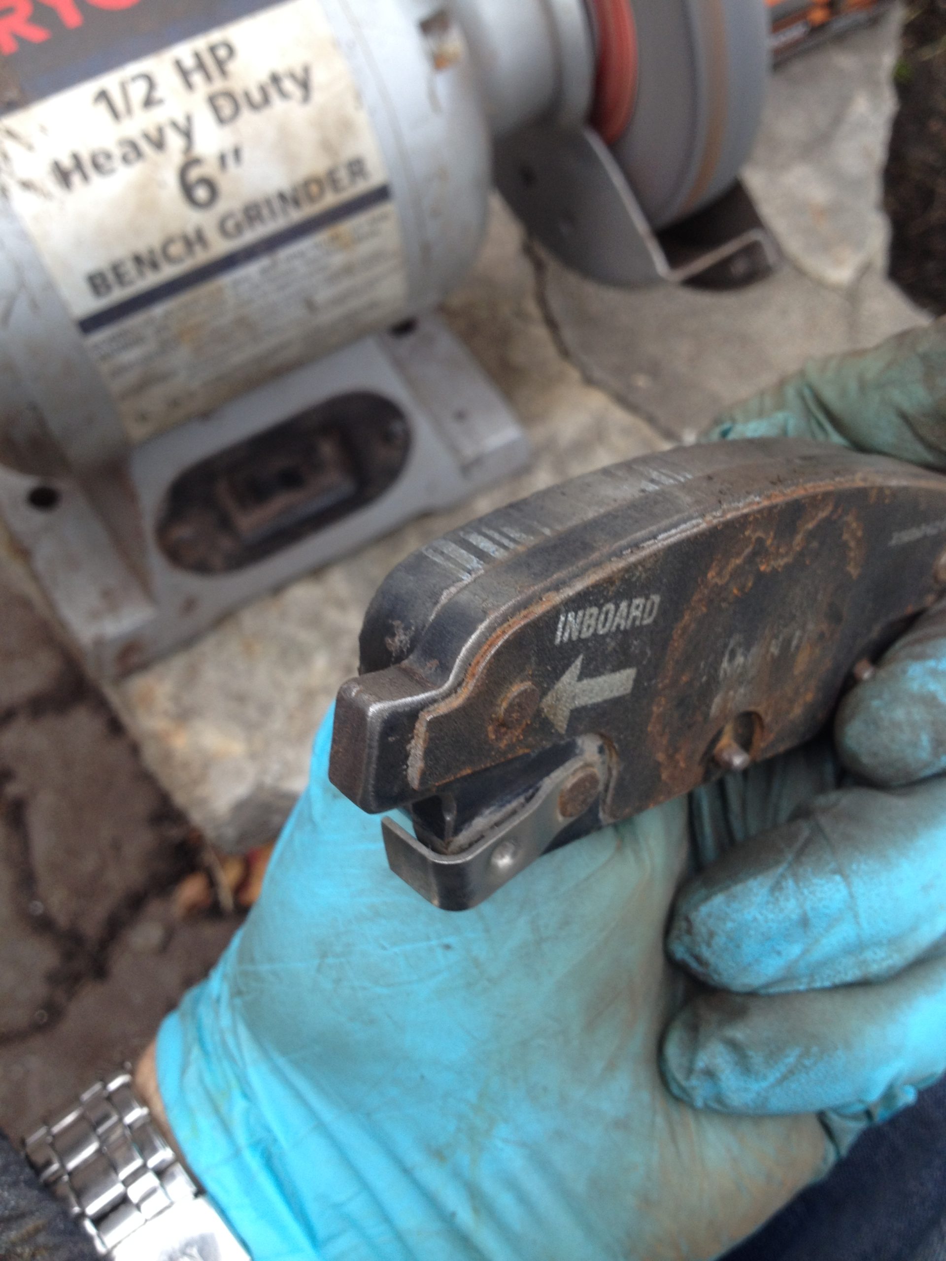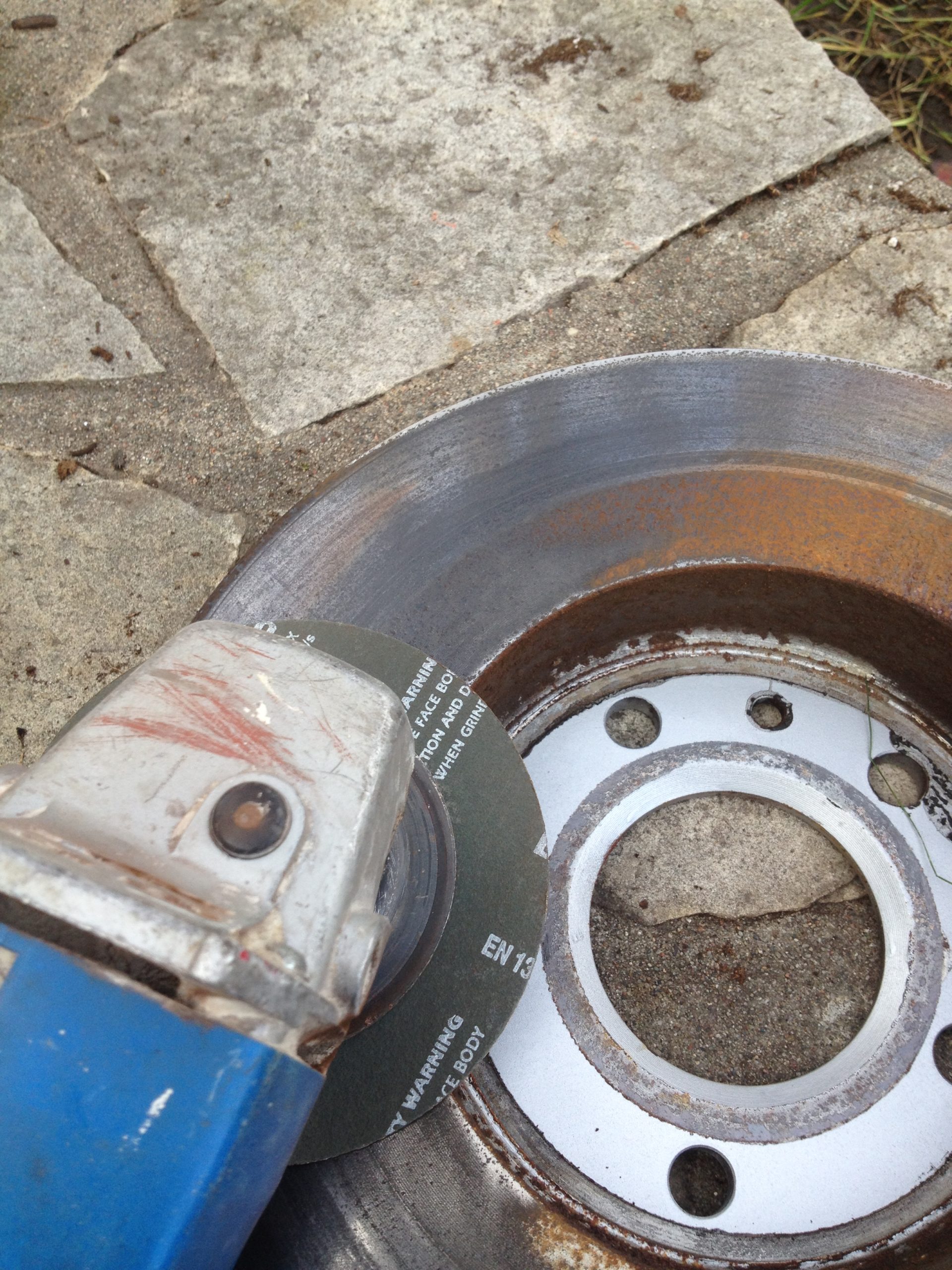 D’abord, je passe un rectifieuse (petit grinder) avec un papier à grain 80. Je mets très peu de pression, juste pour que la rouille soit enlevée, sans retirer de métal ailleurs du rotor.