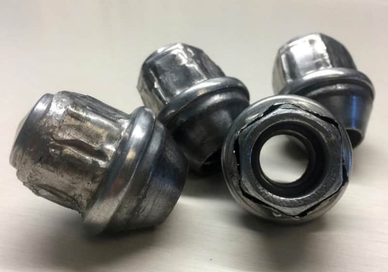 Si les boulons sont déjà gonflés et qu’il faut les remplacer, une autre solution est d’utiliser des boulon d’aluminium. C’est à conseiller si vous avez des mags d’aluminium, cela évite la corrosion galvanique entre la roue d’aluminium et les boulons d’acier. Par contre, si vous avez des roues d’acier, utilisez des boulons d’acier. J’avais d’ailleurs écrit un article sur ce sujet. Des boulons gonflés ne sont pas récupérables. Il faut les remplacer.