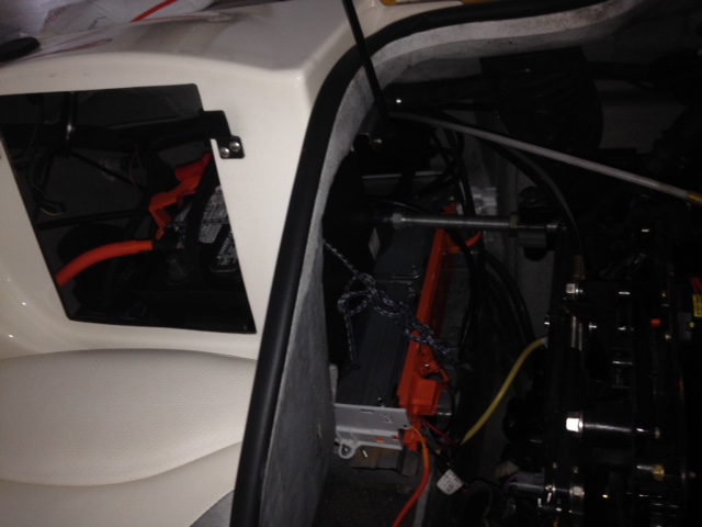 Pour la recharge de ma batterie au lithium, j’ai installé un connecteur pour un bloc d’alimentation à tension précise. Je recharge mes batteries à un niveau de 4.00V par cellule, donc 32.0V pour l’ensemble. Nissan a une tension de charge à 4.05V par cellule. Les batteries au lithium-ion sont chargées à 100% à une tension de 4.20V. J’ai donc une bonne marge de sécurité. Le voltage de la batterie au lithium est mesuré par voltmètre pour cesser l’utilisation quand les cellules atteignent 3.0V par cellule ou 24.0V.
