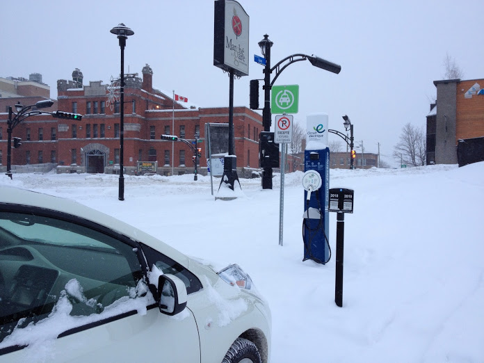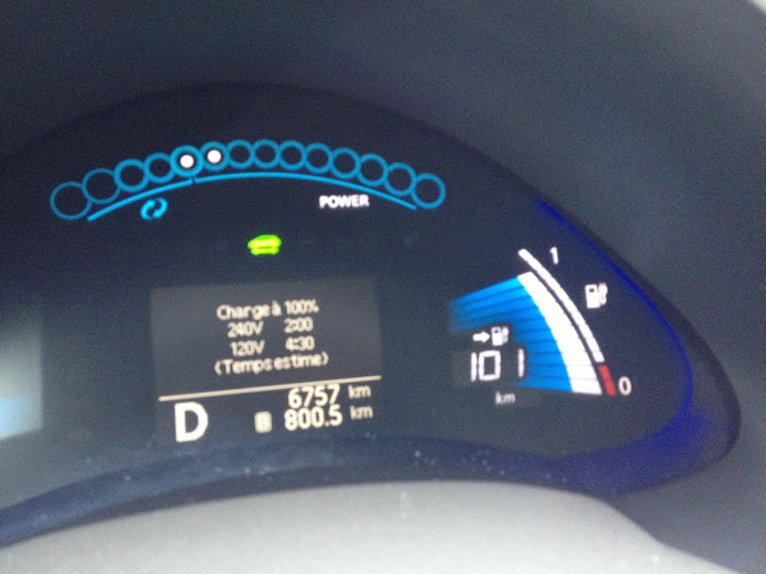 Mon petit essai hivernal (-12) illustre d’ailleurs bien à quel point l’auto électrique peut-être efficace comparée à l’auto à essence dans un contexte de courts déplacements qui comportent beaucoup de côtes. En plus de consommer beaucoup moins d’énergie lorsqu’on monte une côte, la voiture électrique récupère de l’énergie au freinage lors des descentes. L’ascension du mont Washington par Sylvain Juteau en est d’ailleurs un bon exemple. Je ne peux malheureusement pas chiffrer mes résultats, mais après avoir parcouru environ 20 kilomètres dans les côtes de Sherbrooke, j’avais utilisé seulement le tiers de la pile. Donc, je n’ai probablement pas utilisé plus de 0,30 $ à 0,40 $ d’électricité. Par contre, une voiture à essence à -12 degrés qui doit monter des côtes en ville doit consommer facilement de 12 à 15 litres/100 km. Donc, mon petit essai aurait coûté au minimum 3 $ selon la voiture utilisée.