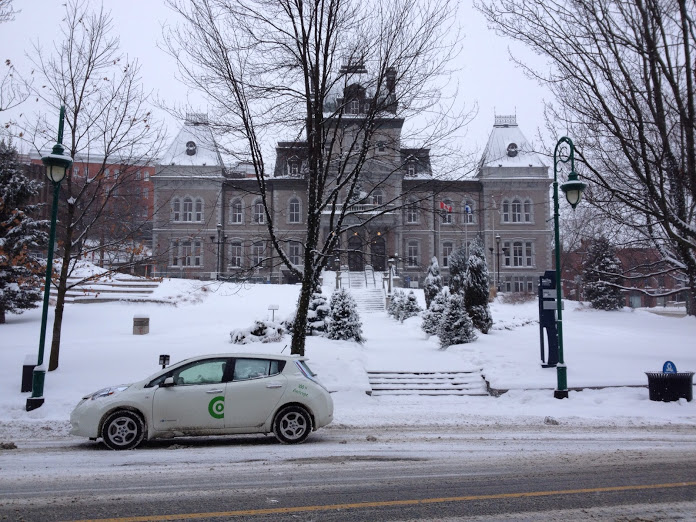 Mais j’ai par contre décidé de profiter du fait que Communauto possède maintenant une Leaf à Sherbrooke pour tester le véhicule dans les côtes enneigées de cette ville.