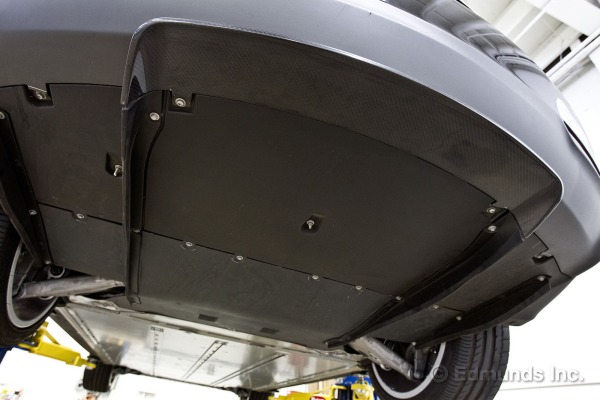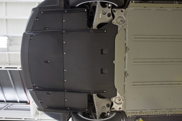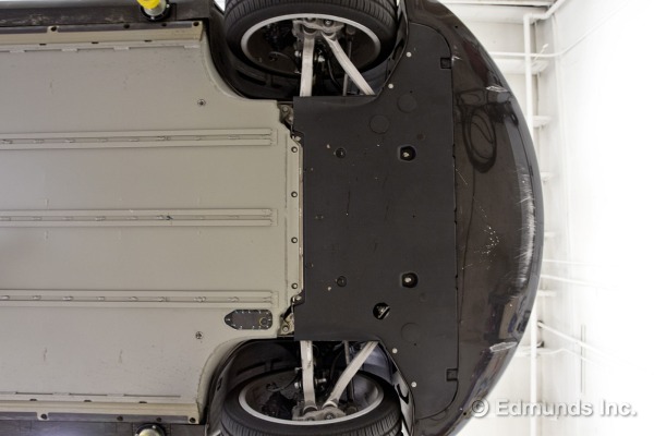 La surface sous la carrosserie est aussi plane que possible. Cela permet de réduire efficacement la traînée aérodynamique. On pense souvent que cette traînée concerne la surface visible du haut de la carrosserie, mais l’air circule également en dessous de la voiture! Dans une voiture à essence, l’air rencontre beaucoup d’obstacles à son écoulement: réservoir d’essence, silencieux, transmission, bosses du plancher, etc. Toutes ces irrégularités forment des obstacles à l’écoulement de l’air aussi efficaces que s’ils étaient situés sur le dessus de la voiture! Dans la Tesla S, le design du dessous de carrosserie place cette voiture dans une classe à part et au-dessus des Mercedez et BMW.