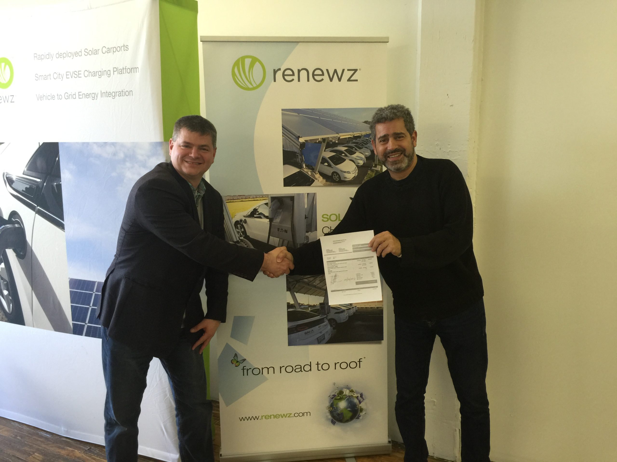 Le PDG et fondateur de renewz , Sass M. Peress, a déclaré que «d’avoir signé aujourd’hui l’entente avec Sylvain Juteau, un des pionniers du véhicule électrique au Québec, est un moment important pour renewz. Malgré le fait que nous avons déjà effectué plusieurs installations à travers les États-Unis et l’Ontario, nous n’avions pas encore eu la chance de développer des projets d’installation solaire au Québec. Maintenant, nous aurons un exemple concret du mariage possible entre les énergies renouvelables distribuées et le rechargement de véhicules électriques, et ceci avant la foire EVS29 à Montréal en juin. Ce n’est pas à cause de notre abondance d’énergie provenant de projets hydroélectriques que le Québec doit se restreindre pendant que le reste du monde encourage différentes énergies renouvelables», conclut M. Peress. Il est a noté que renewz vient tout juste de signer un accord de transfert de technologie afin de permettre la fabrication des pièces de l’abri “iSun” ici même, dès la fin de 2016.